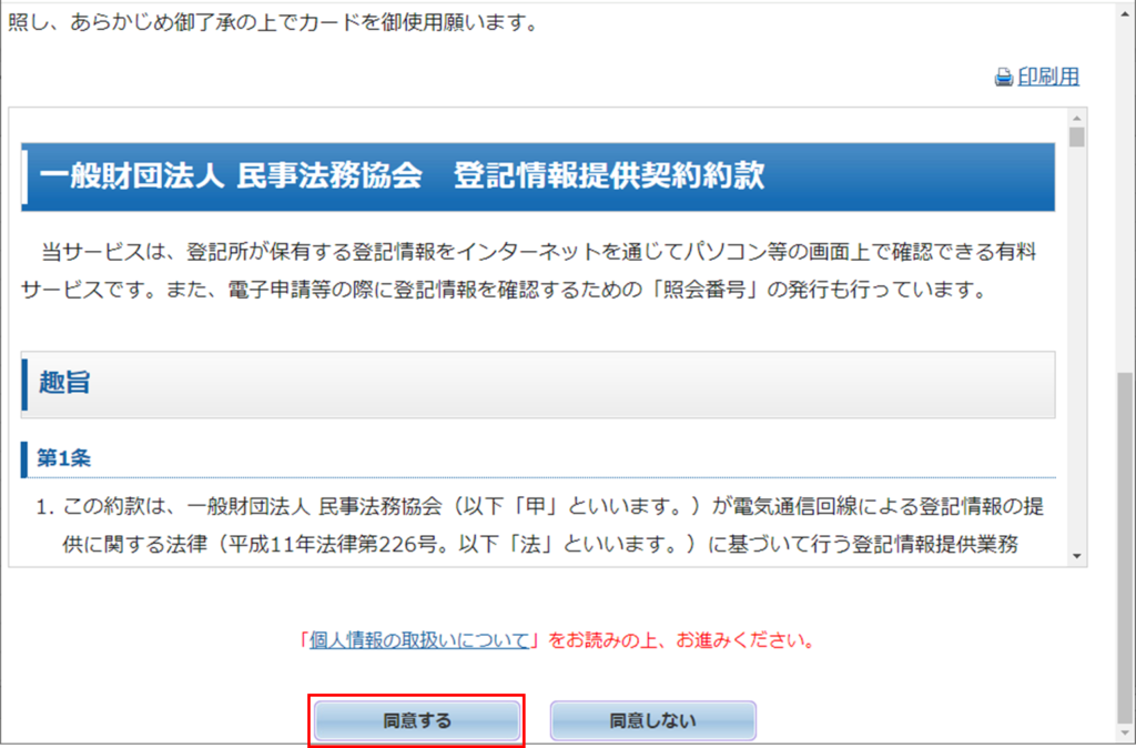画面下部の同意するを押下