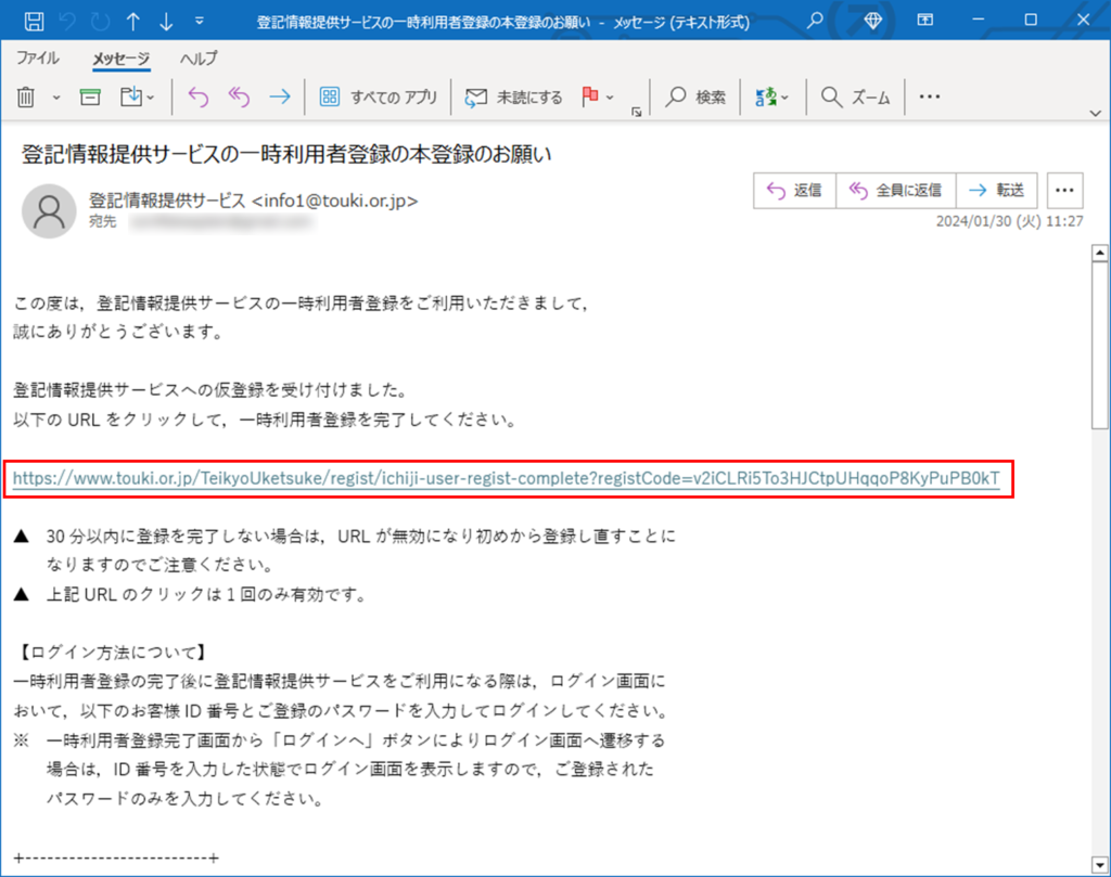 メール内のリンクを押下。